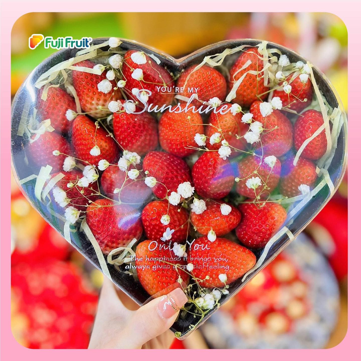 Không có gì tuyệt vời hơn khi tặng một món quà hình trái tim cho người phụ nữ mình yêu thương. Hộp quà/ bó hoa hình trái tim với thiết kế sang trọng và đầy ấn tượng không chỉ là món quà đẹp mắt mà còn thể hiện sự lãng mạn, chân thành. Bên trong hộp quà, bạn có thể chọn các hoa quả tươi ngon như: dâu tây, cherry, nho,…. Đây chính là món quà lý tưởng để bày tỏ tình cảm với vợ hoặc người yêu.