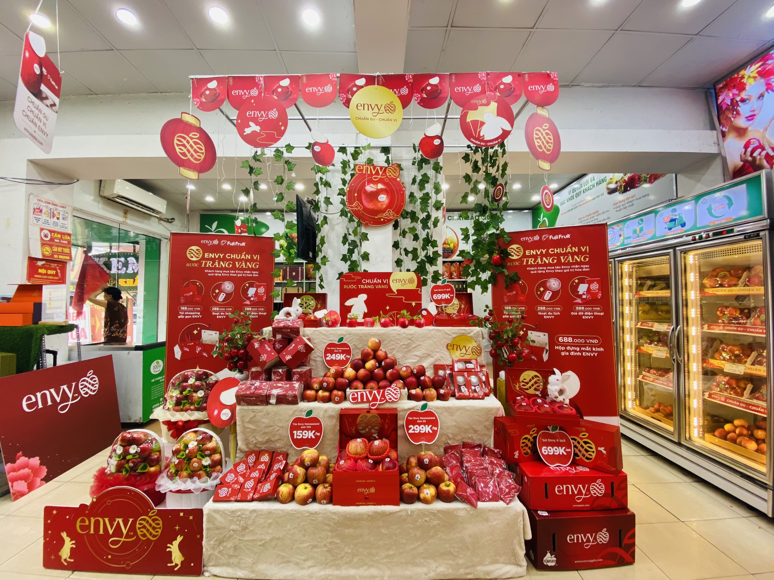 (Một số không gian trưng bày táo Envy tại các chi nhánh của Fuji Fruit)