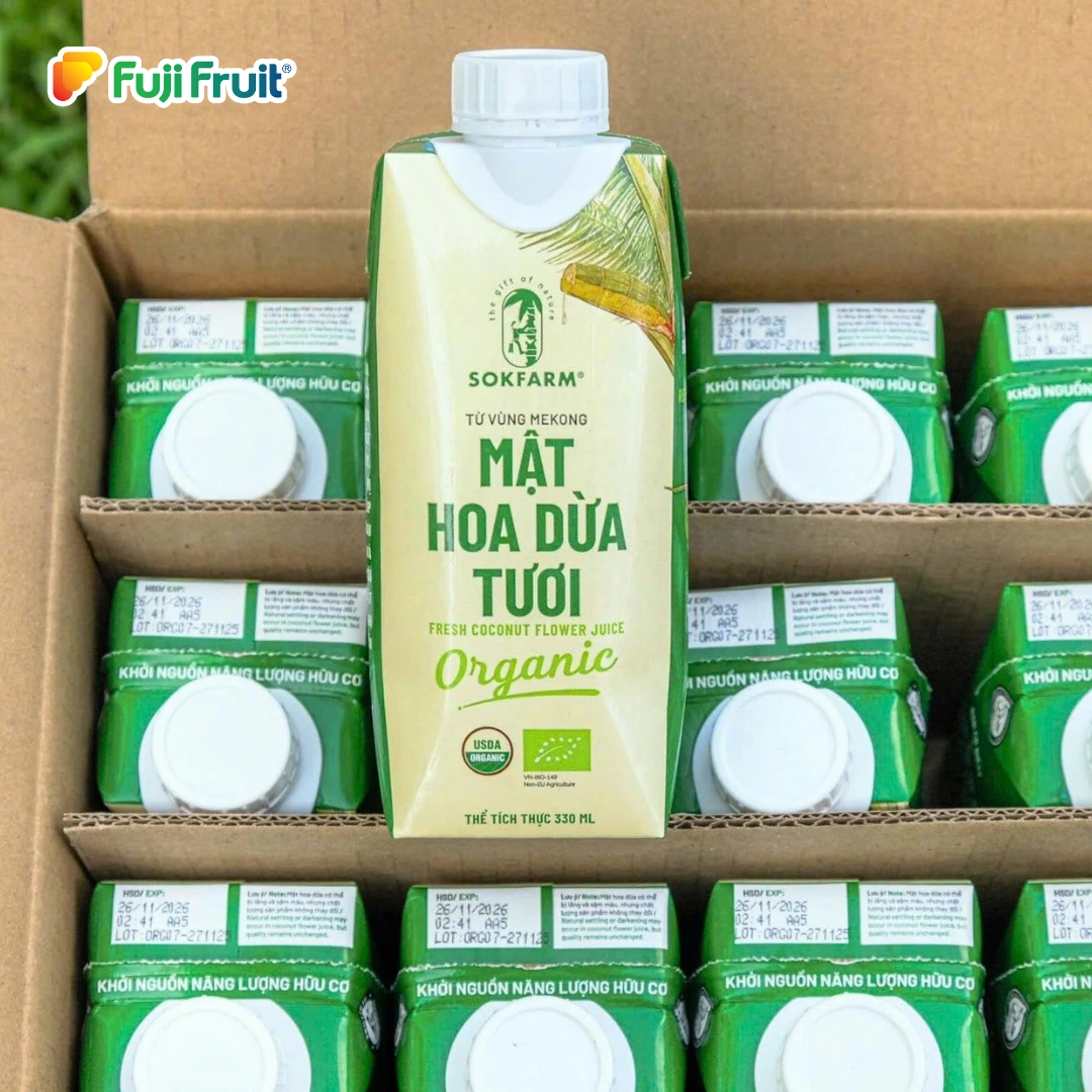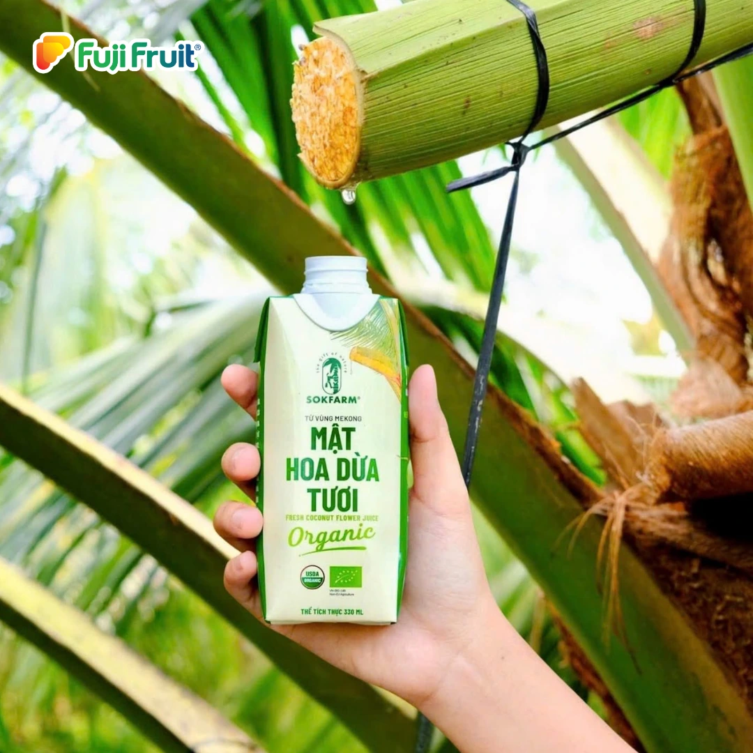 Mật hoa dừa tươi Sokfarm được thu hoạch trực tiếp từ hoa dừa, sản xuất theo quy trình tự nhiên, đảm bảo giữ trọn hương vị nguyên bản và dinh dưỡng.