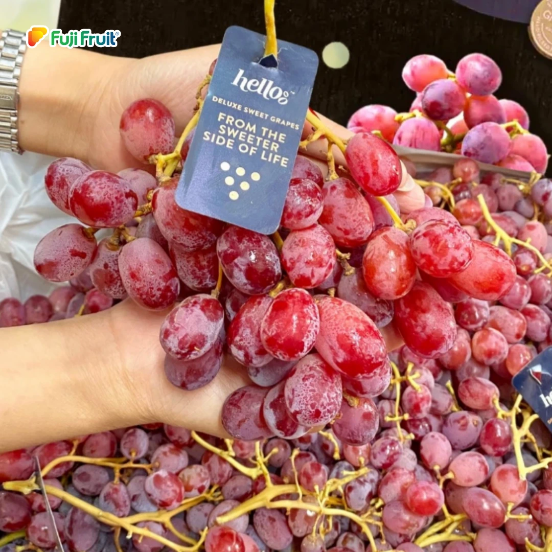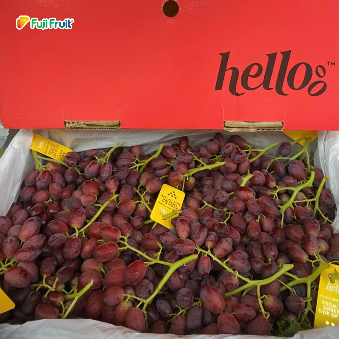 Nho đỏ Hello Úc là một loại trái cây nhập khẩu chất lượng cao, được ưa chuộng nhờ vào vị ngọt thanh, màu sắc hấp dẫn và giá trị dinh dưỡng dồi dào.