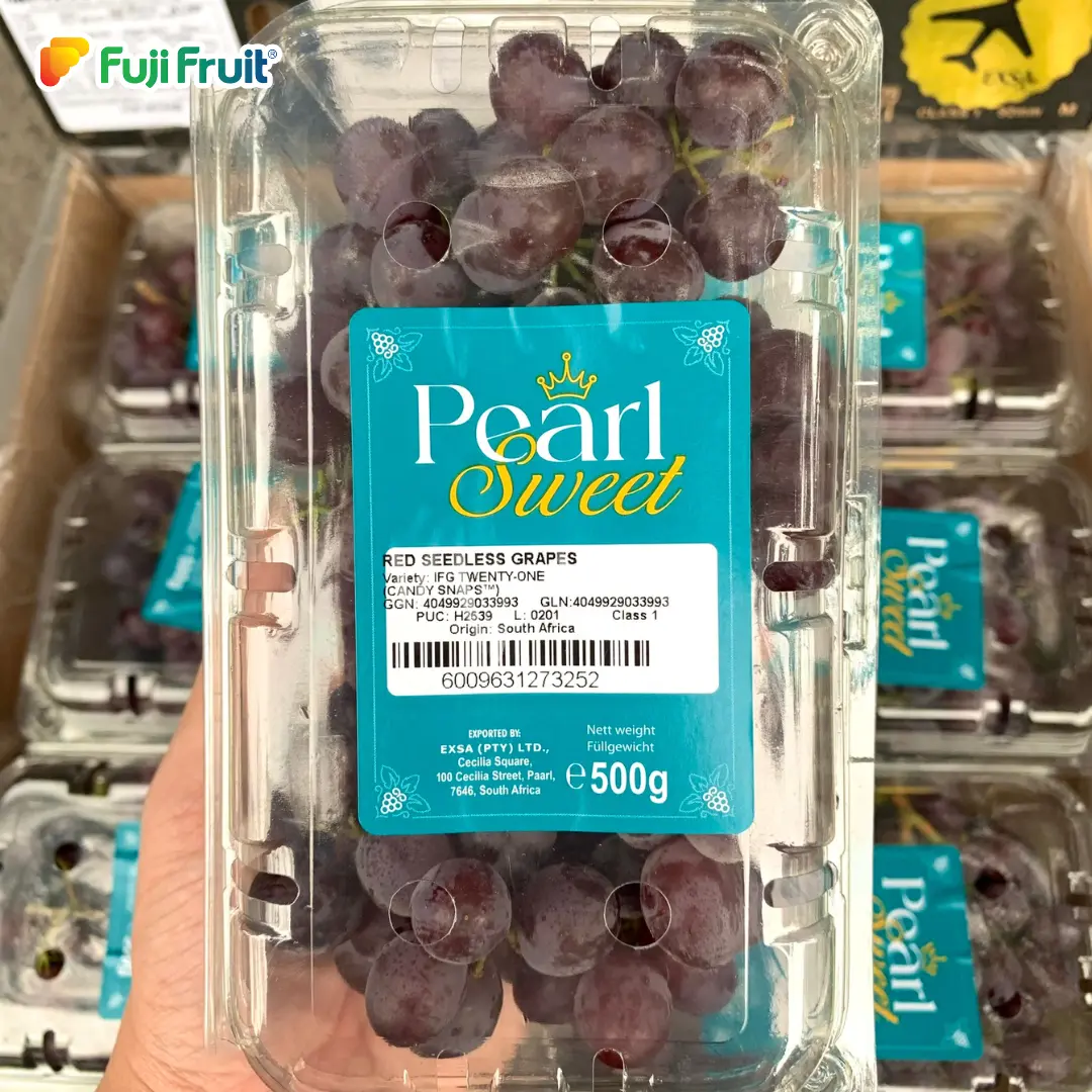 Nho Đỏ Kẹo Nam Phi được nhập khẩu trực tiếp từ các vùng trồng nho chuyên canh nổi tiếng của Nam Phi, một quốc gia được công nhận toàn cầu về chất lượng nho xuất khẩu, tạo nên môi trường lý tưởng cho sự phát triển của những trái nho đạt độ ngọt cao, màu sắc hấp dẫn và hương vị phong phú. Tạo nên vị ngọt đậm đà mà người tiêu dùng sành ăn ưa chuộng, đặc biệt ở các giống nho được mệnh danh là “kẹo” nhờ trải nghiệm vị giác độc đáo.