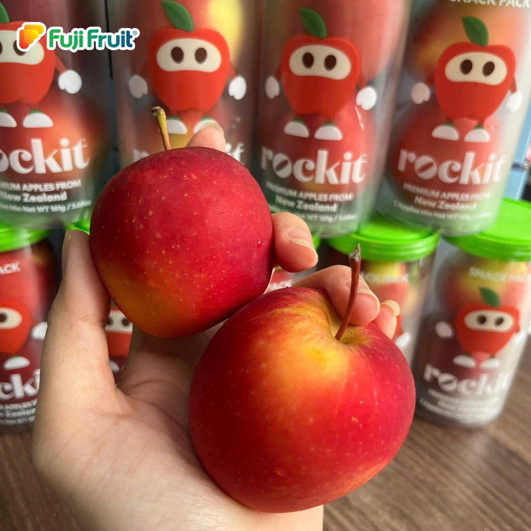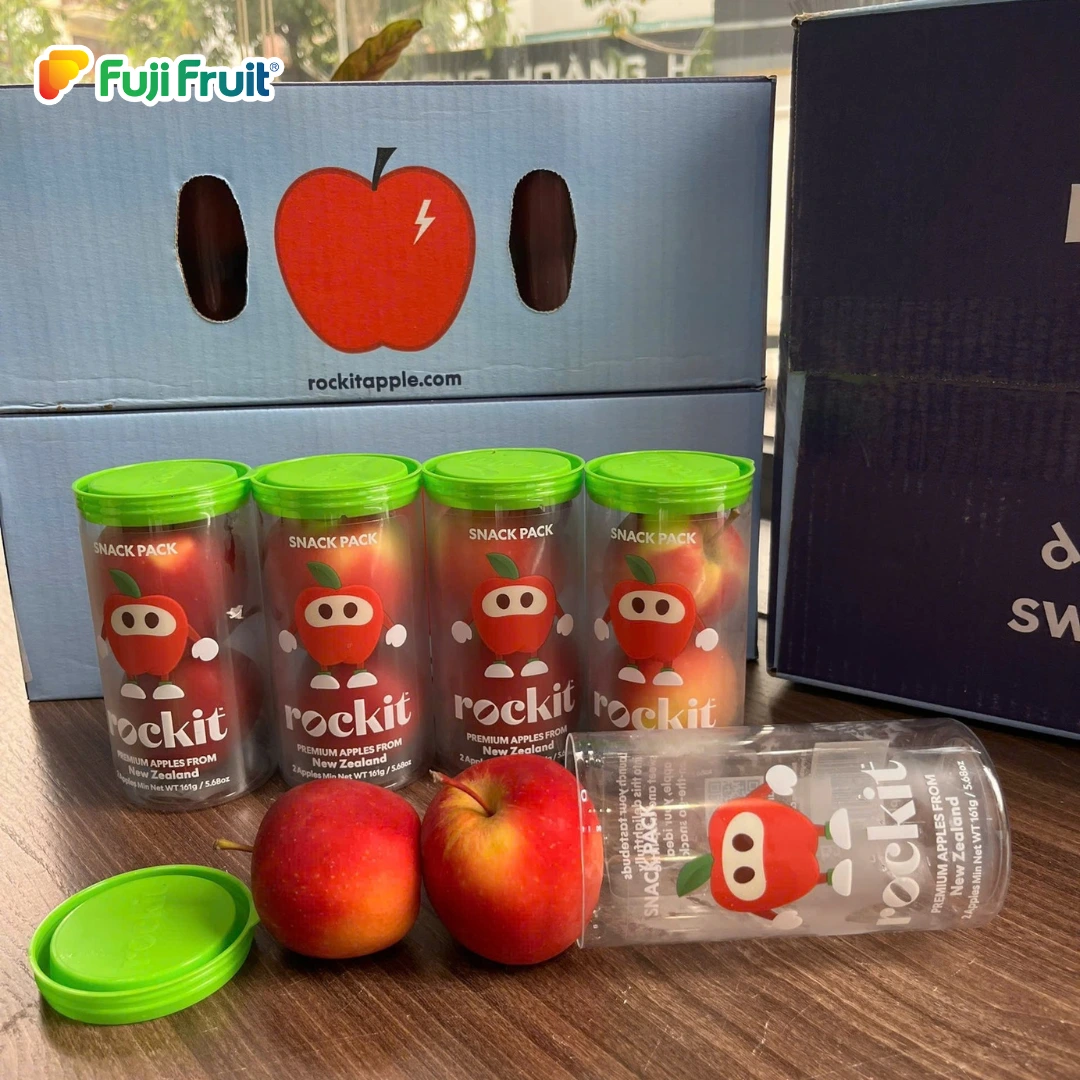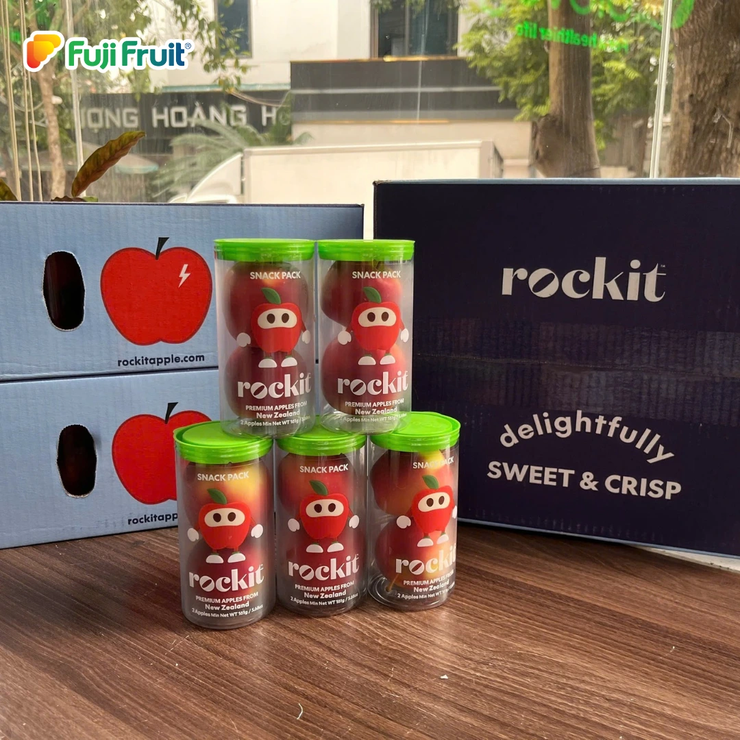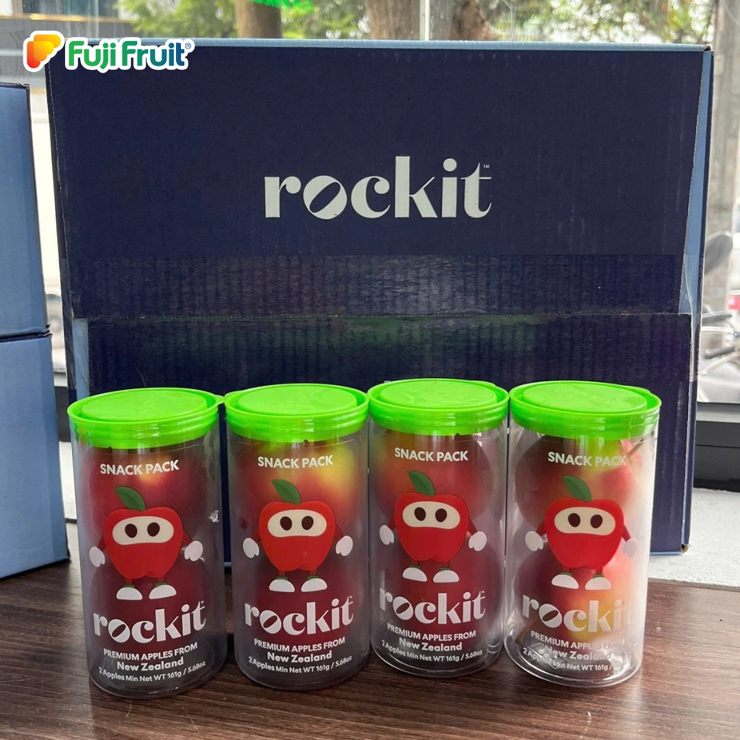 – Với cách đóng gói ấn tượng là điều dễ dàng nhận biết nhất của dòng táo Rockit. Một chiếc ống dài thiết kế với màu sắc bắt mắt với hai tông màu chủ đạo là xanh và đỏ kèm theo là phần mô tả sản phẩm và slogan của nhà sản xuất.
